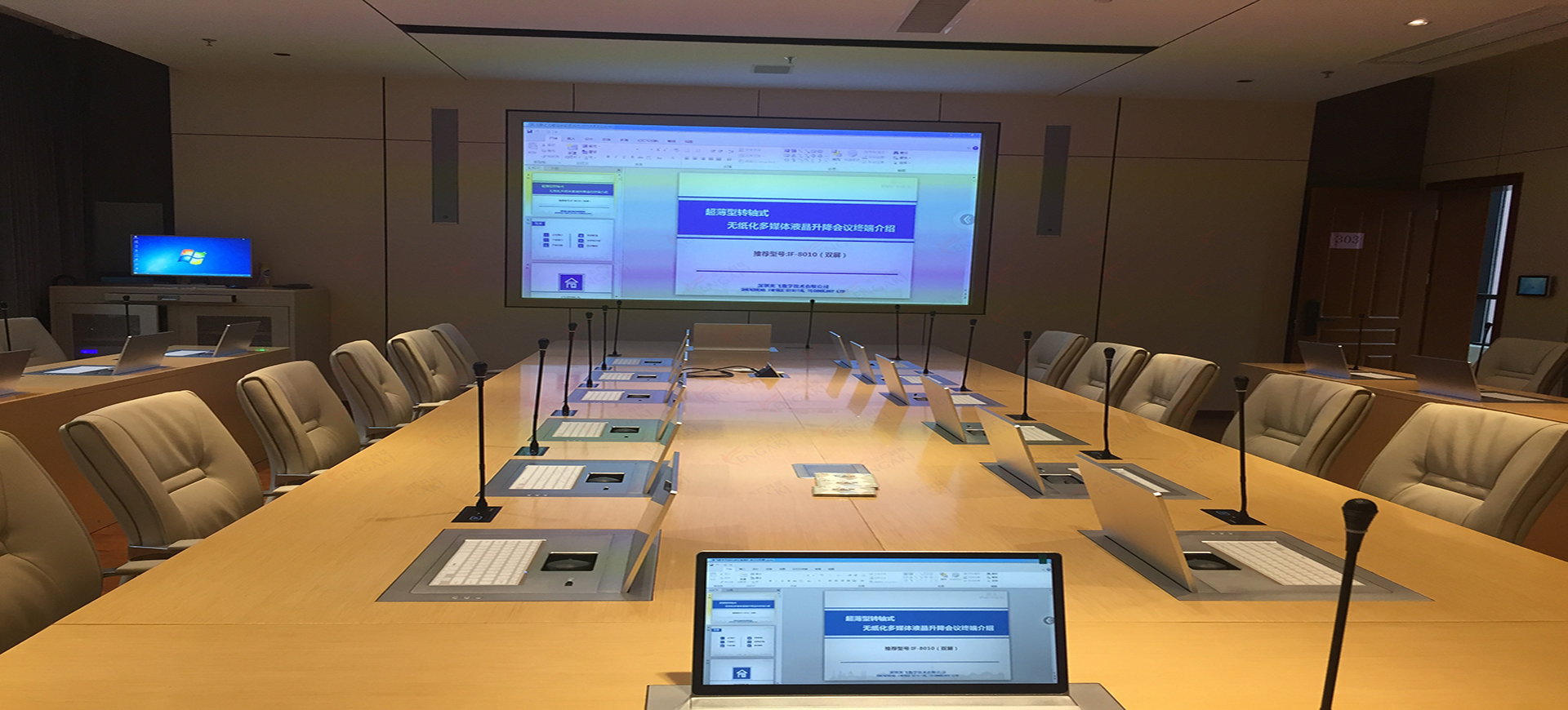 會議室音響工程-會議室音響-會議室音箱系統-會議室系統 針對會議室進行會議、音頻、視頻、攝像、錄音錄像及遠程會議系統設計,實現會議室的多媒體功能,滿足簡潔流暢的無紙化會議需求。